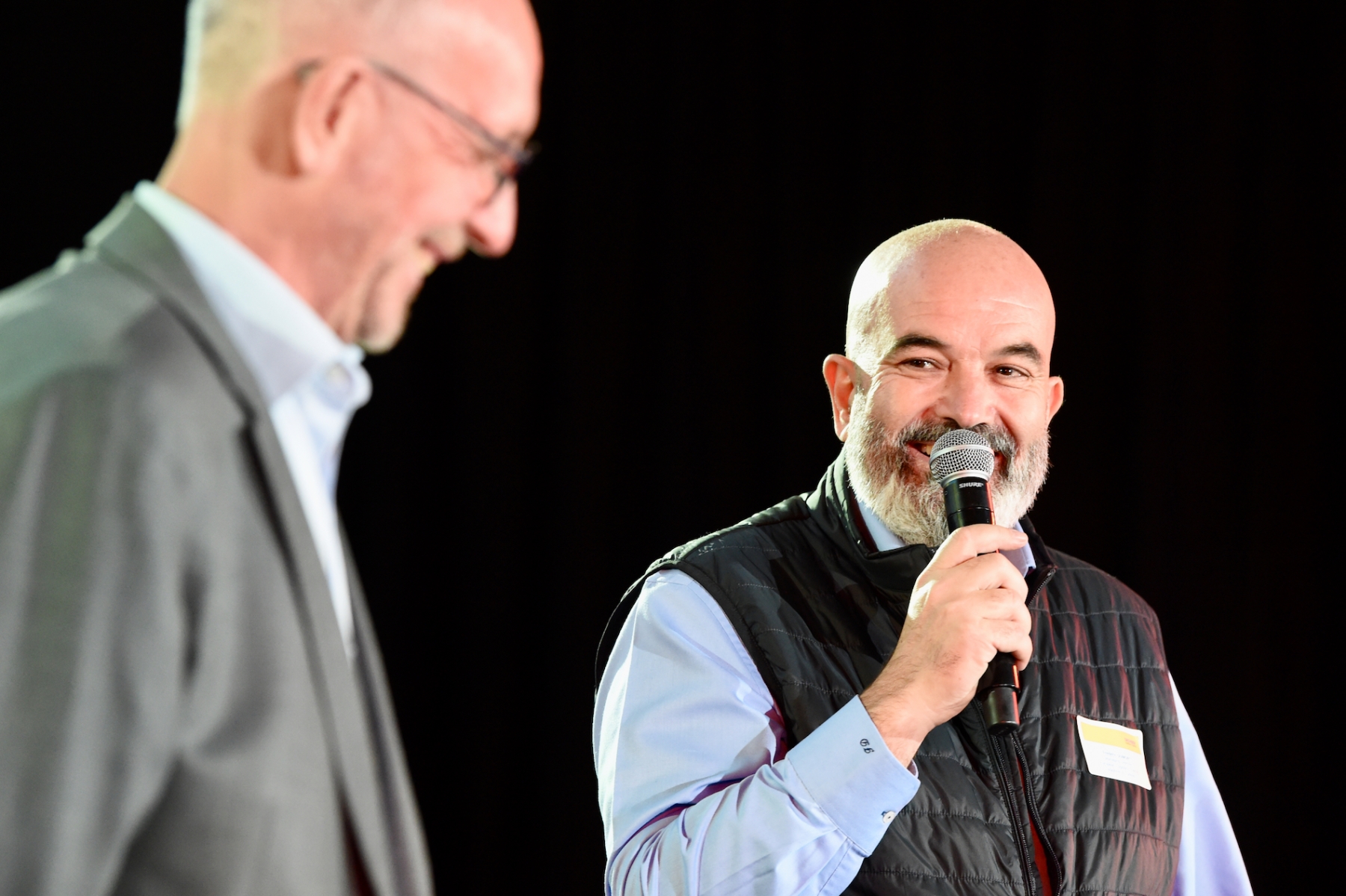 Les invités ont les yeux rivés sur l’écran et se rendent compte au fur et à mesure que le drone qui pénètre dans l’entrepôt est en direct et que tout se passe en live.